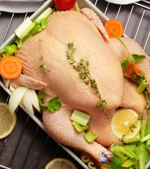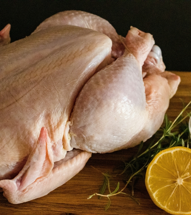Bio-Hühnerfleisch aus artgerechter Tierhaltung - ideal zum Braten und Grillen, im Ganzen oder halbiert erhältlich.
